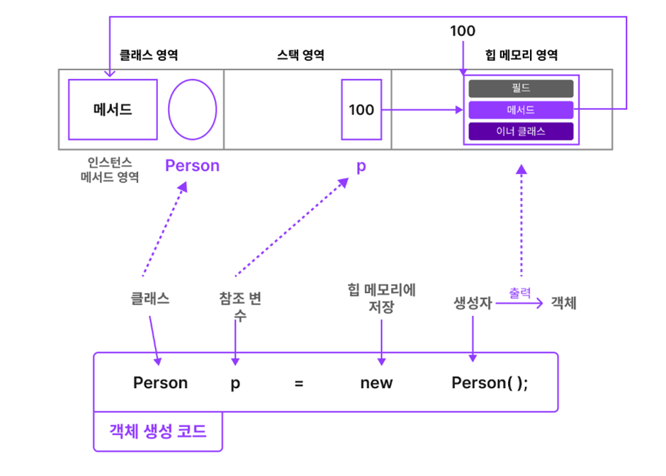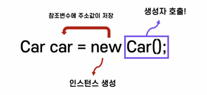 참조_변수명 = new 생성자(); // 인스턴스 생성 후, 객체의 주소를 참조 변수에 저장