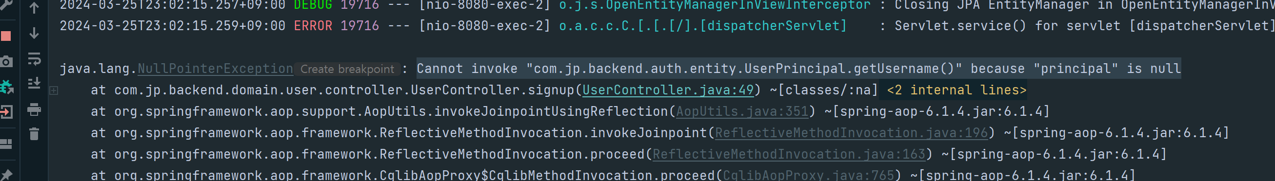 이제 SecurityContextHolder에 잘 넣어줬으니 될까? 라고 생각했으나,, 애석하게도 여전히 principal 객체는 null을 반환했고,