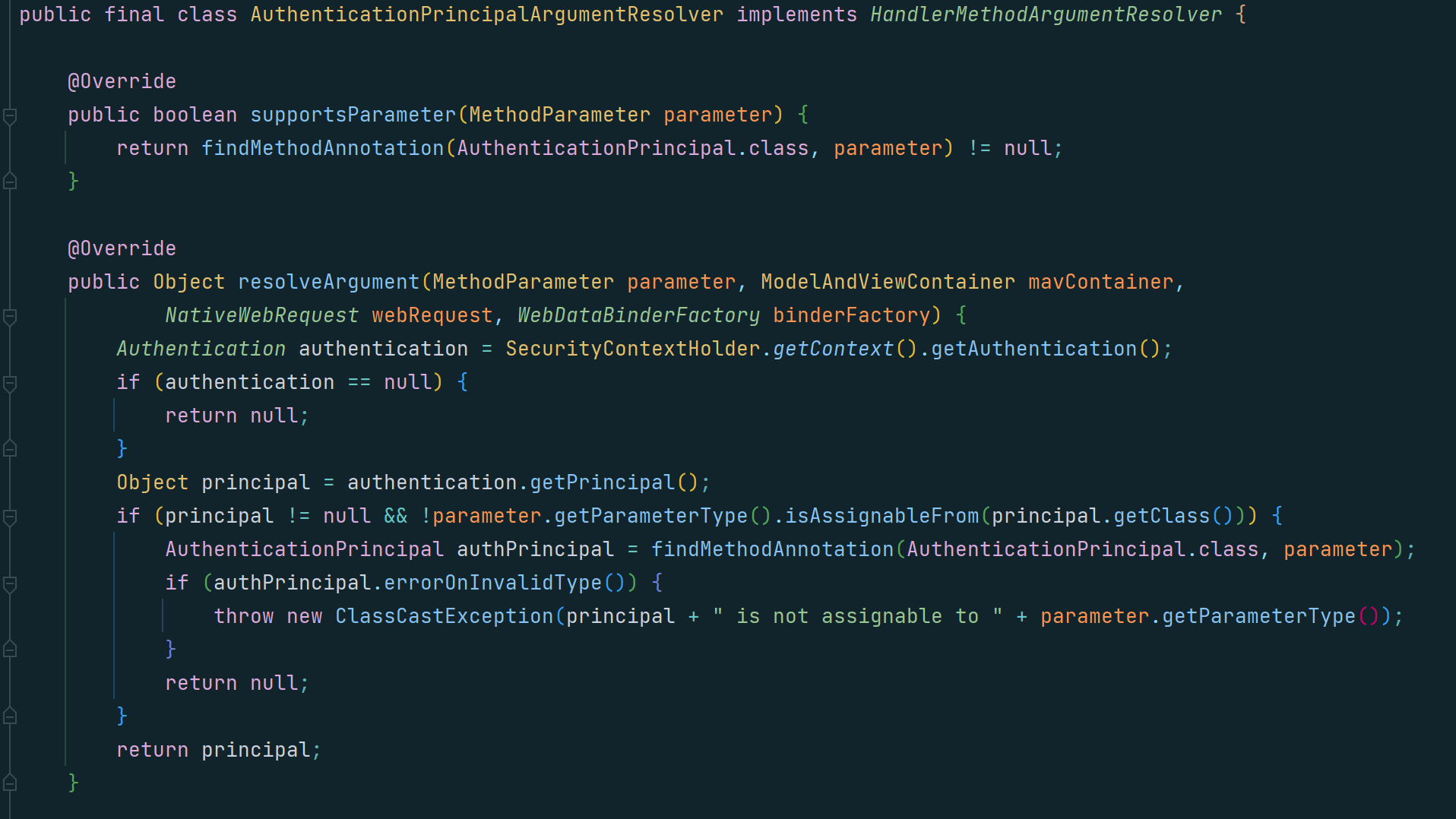 그럼 이 AuthenticationPrincipalArgumentResolver의 안으로 들어가보면,