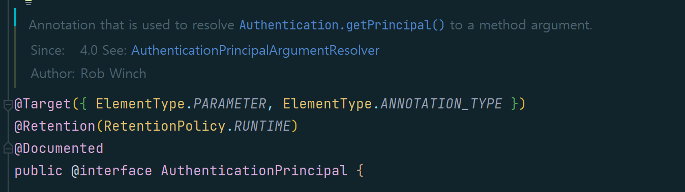 이제 문제가 발생하는 @AuthenticationPrincipal 어노테이션을 뜯어보면