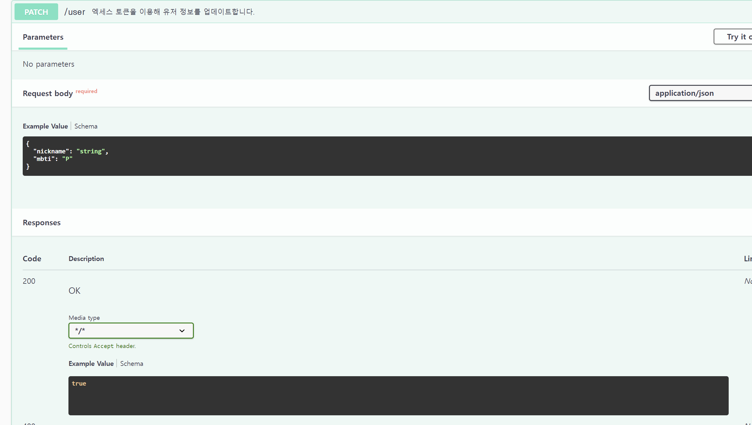 스웨거로 유저 정보를 변경하는 테스트도 잘 동작하였따 ㅠㅠㅠ