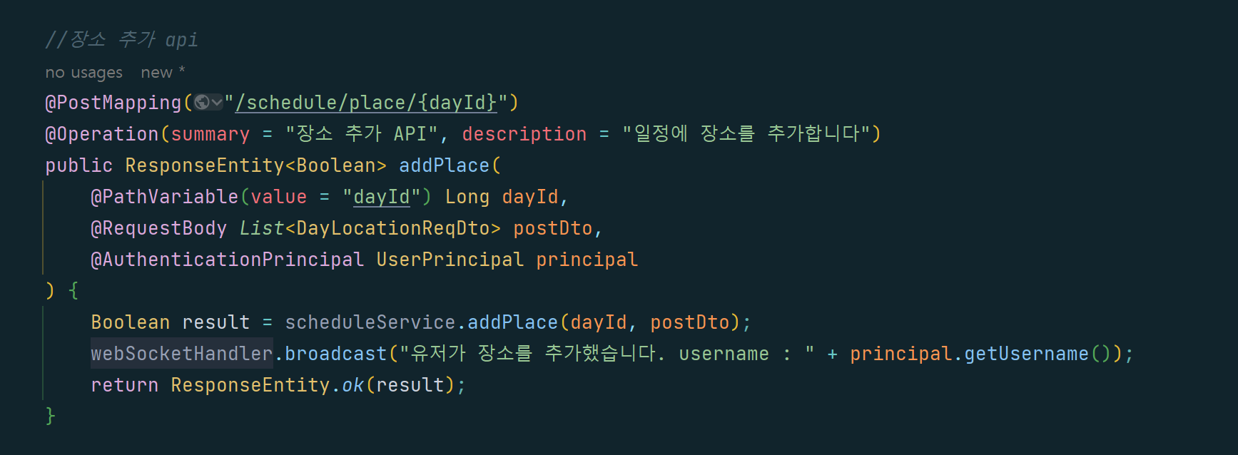 유저중 한명이 POST,UPDATE,DELETE요청을 보내서 여행 일정을 변경하면