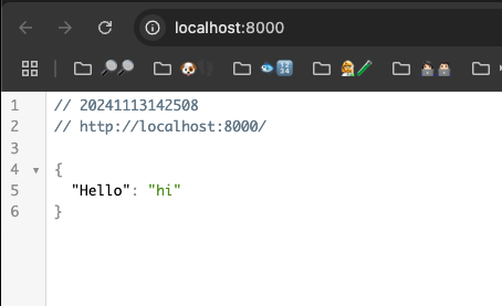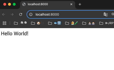 localhost 8000에 접속하면 서버에서 저정한 응답을 얻을 수 있다.