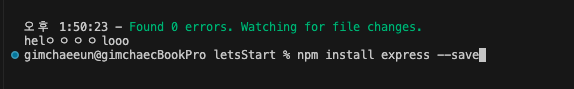 package.json 에 express 디펜더시가 추가된 것을 확인할 수 있다.