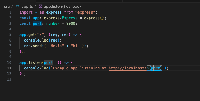 express 공식 문서에 있는 예제를 app.ts에 추가해보자 (최신 문법을 반영하였다.)