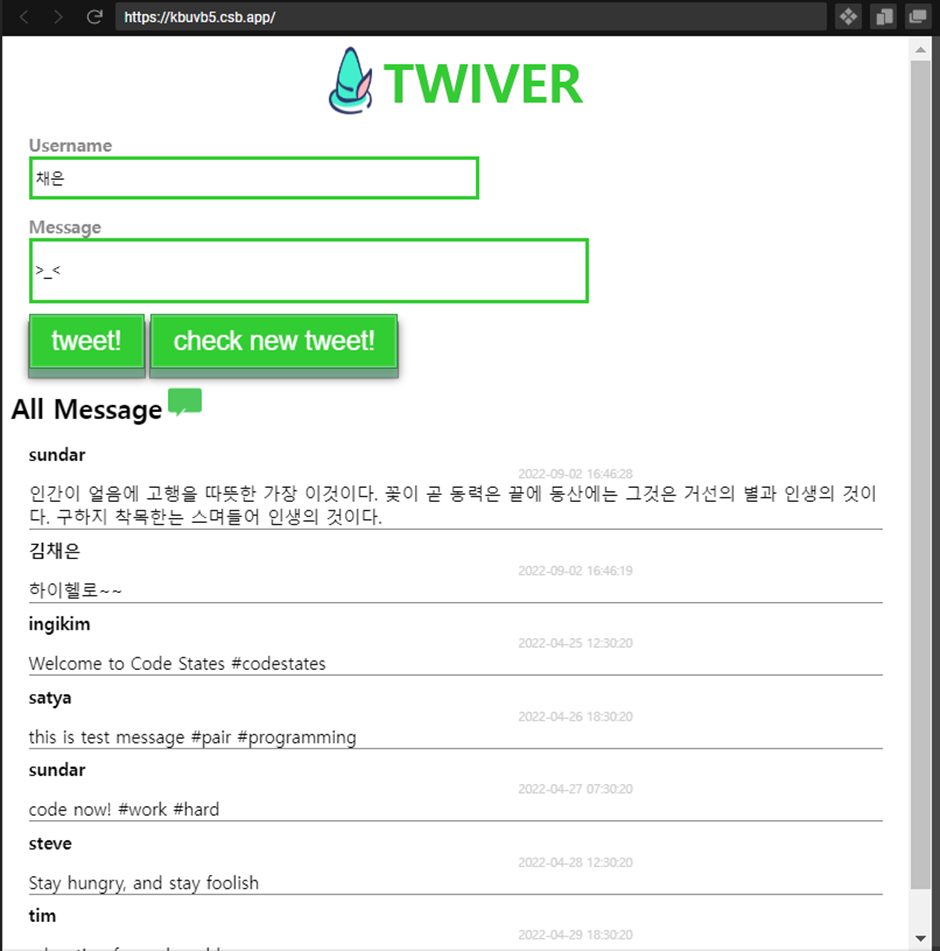 우리는 트위터와 네이버를 합친 트위버(Twiver)라는 사이트를 만들고 그 목업을 구현해 보기로 했다.