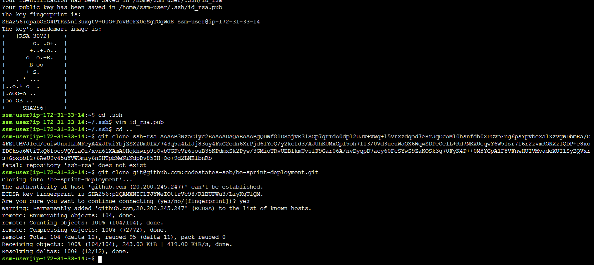 폴더를 cd ~ -> cd .ssh 로 바꾸어서 생성해 주었더니 됐다.