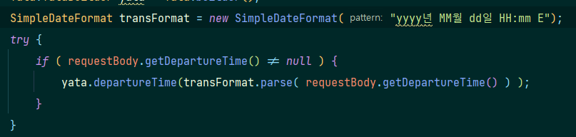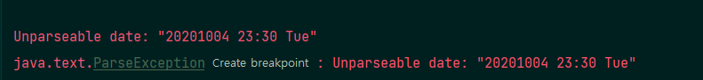 "20201004 23:30 Tue"의 스트링 타입을 타입을 다음과 같은 transformat을 사용하여 date타입으로 변환해주려 햇는데 오류가 떳다