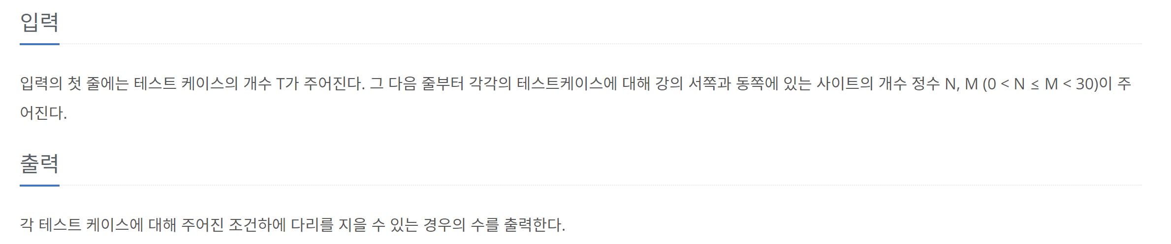 백준 1010 -다리놓기