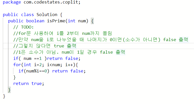 1 이상의 자연수를 입력받아 소수(prime number)인지 여부를 리턴해야 합니다.