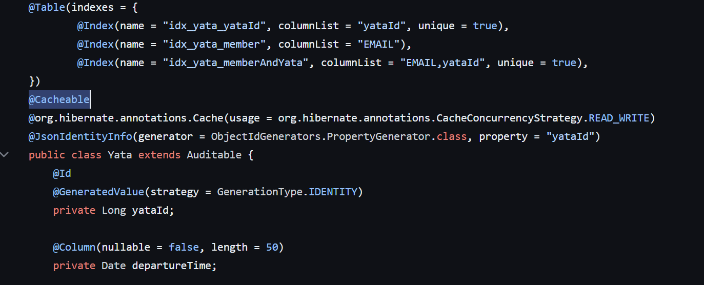 캐시를 사용할 엔티티 객체 위에 에너테이션 붙여줌