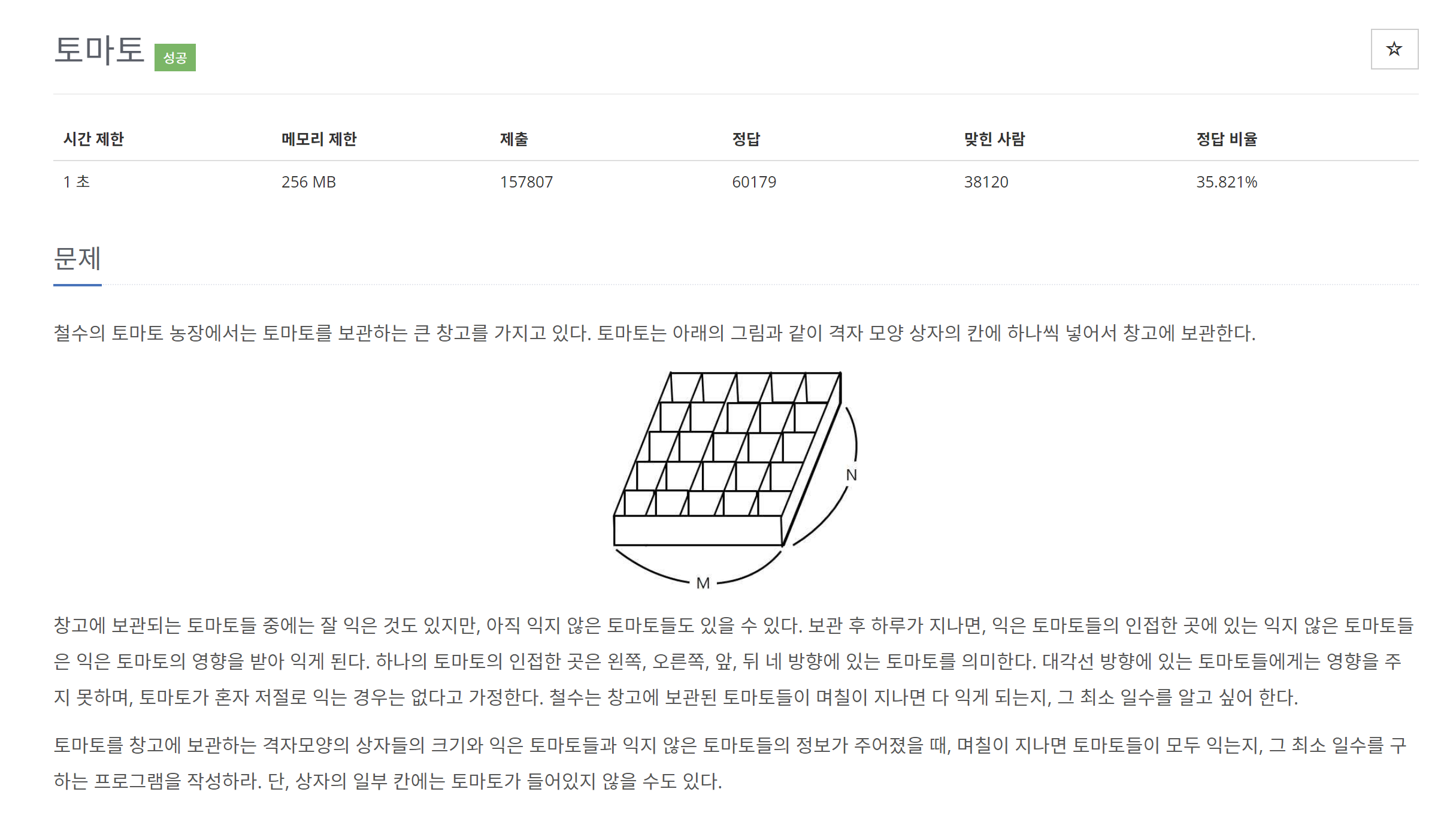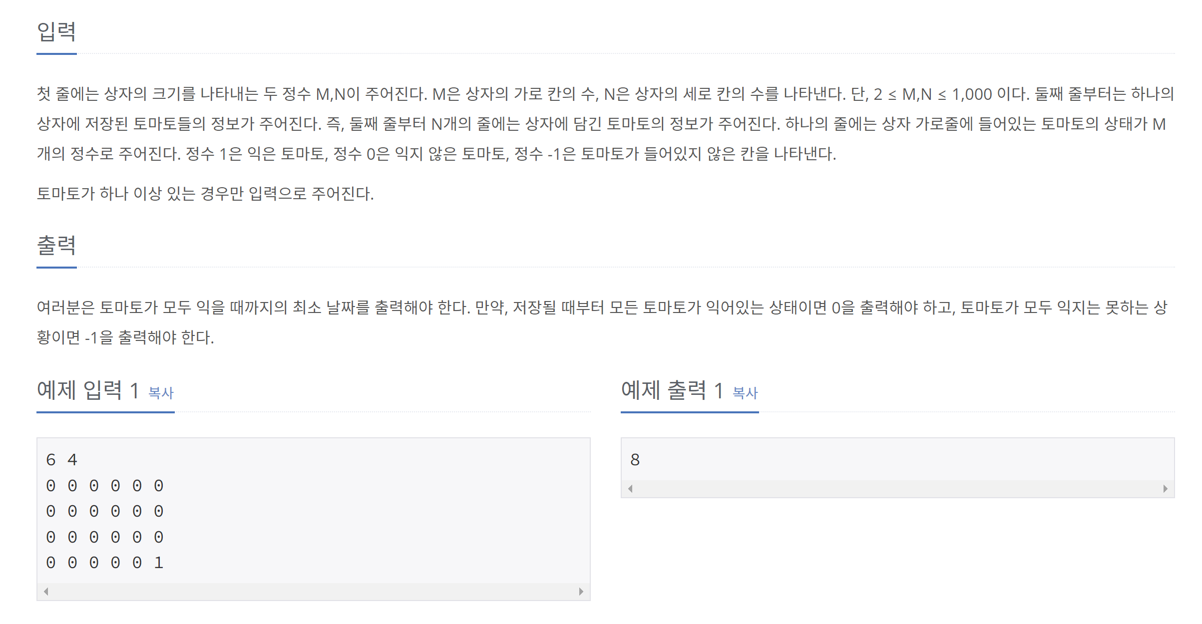 bfs를 이용해 익은 토마토가 들어있는(1) 좌표를 q에 넣어주고,